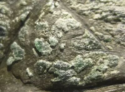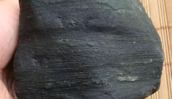 石头表皮上如同木纹丝丝似的蟒。其里面的色也是丝丝,即便是老帕敢的黑乌沙,如果其表皮是丝丝蟒,里边丝丝绿,不会连成片。