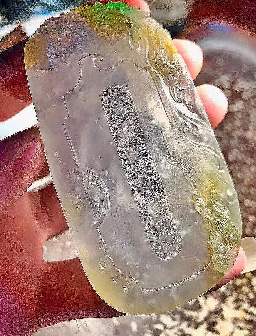 背面雕刻雕刻一些仿古纹饰,不是很难得那种,现在能看到它的质感了,冰感十足,雪花棉飘飘落下,散发出来光泽莹光感,价值非凡呐!