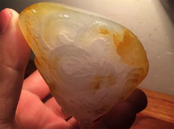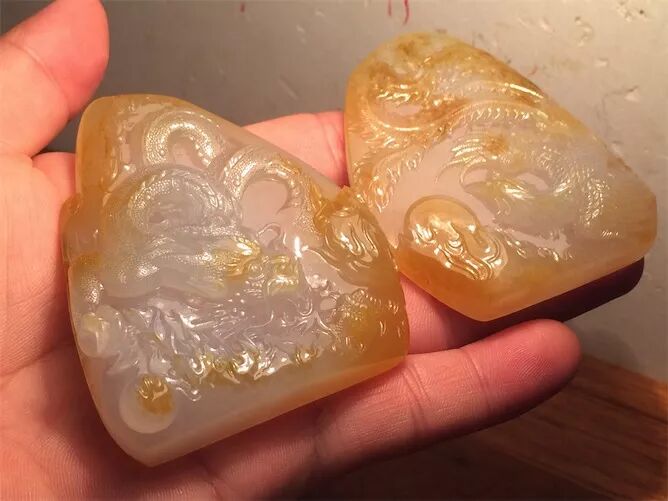 成品是一对龙牌挂件,这块料子最后的庐山真面目,漂亮就不用过多的形容了黄翡是具有收藏价值的,市面上的话每个人看见都会喜欢真的是人见人爱!