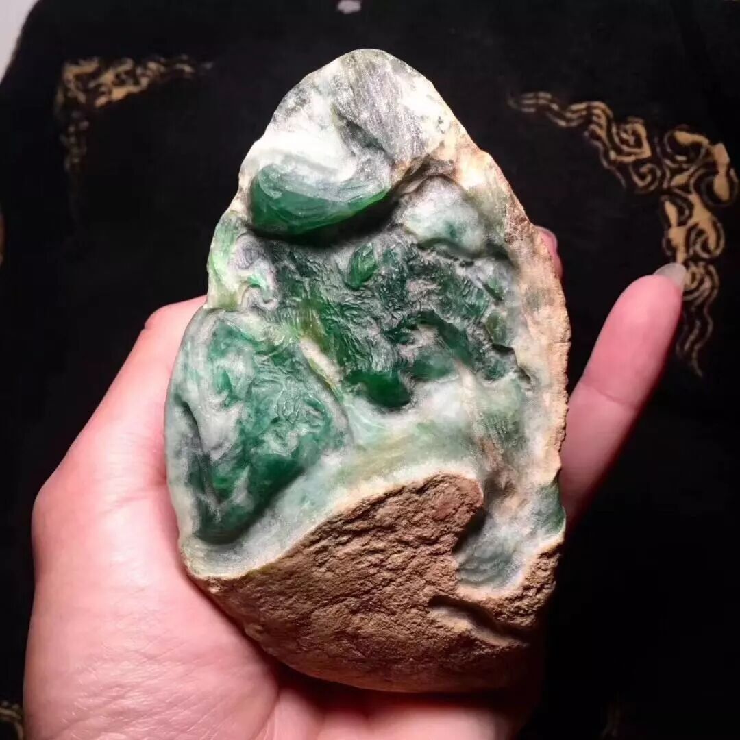绿色的多少和色质的好坏决定着翡翠的品质和价值。因此,要注意通过观察翡翠原石内部绿色部分在表皮上显露的种种迹象,推断其内部绿色的状况。绿色的多少,与绿色部分的形态和分布特点有关。