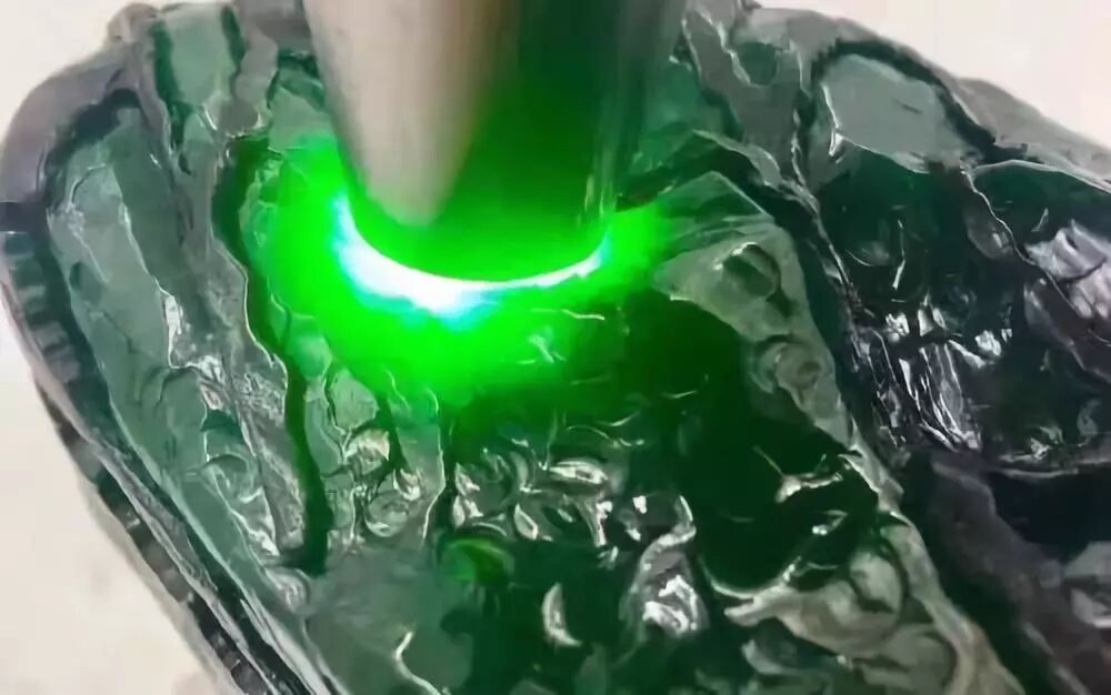 前不久刚买的翡翠赌石,看上去平平无奇,切开却是超级棒的!
