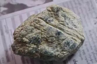 形似树皮,黄褐色,显褐皱性的干枯,眼看粗糙,手感带刺。切割后多见白水底,含正色者居多,可赌性强!