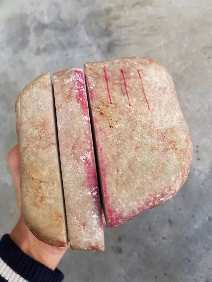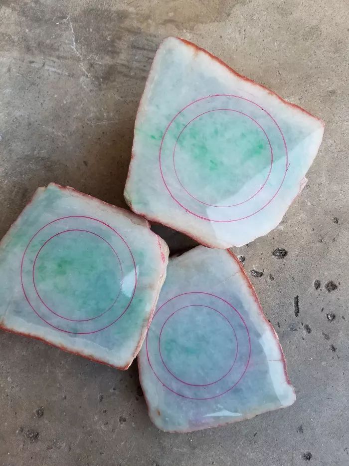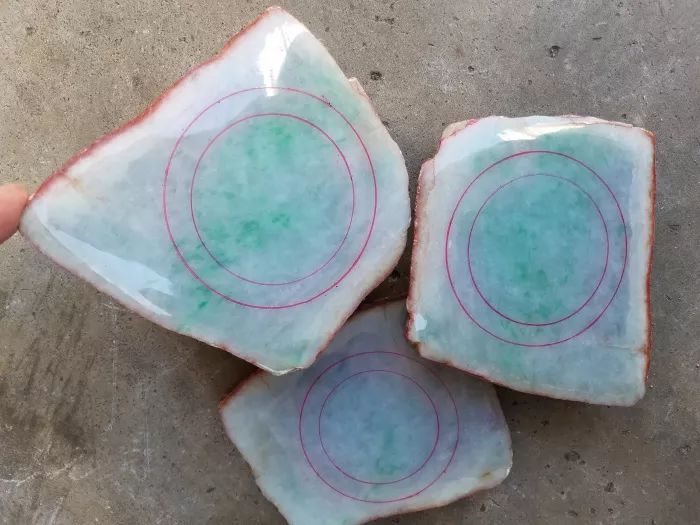 最近朋友8000块买了一块木那场口的翡翠原石,是一块非常有特色的料子,原石已经从中间切开,分成三份,目测还可以切三刀,实力货色。