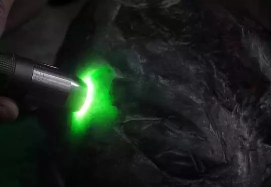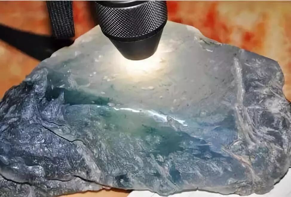 这块原石重4.5千克,翠友们觉得怎么样呢?再来看看打灯的效果。