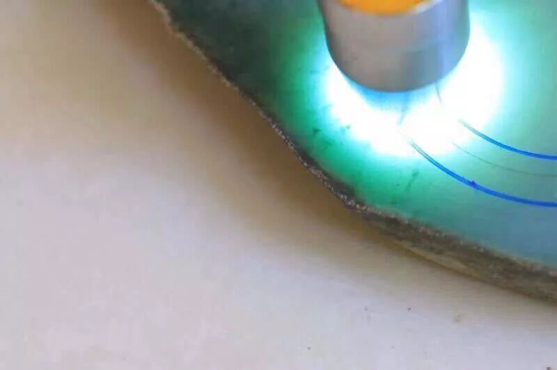 在原石交易市场大家会看到一个现象、 很多人手中都会拿着手电筒、 这个手电筒名叫强光手电,它有助于观察翡翠内部情况的、 比如翡翠内部的绺裂,瑕疵,杂质等、 但是,手电不能用来判断翡翠的种水和色、 在强光照射下,色很容易产生偏色现象。
