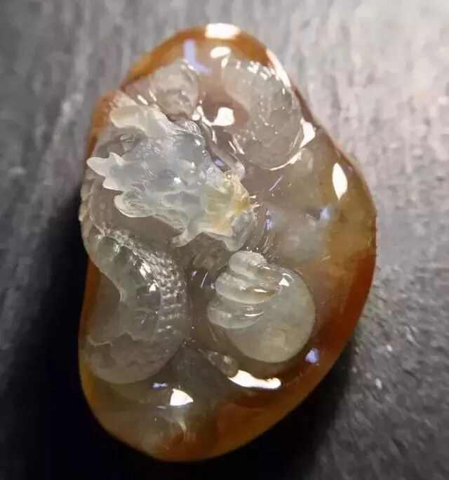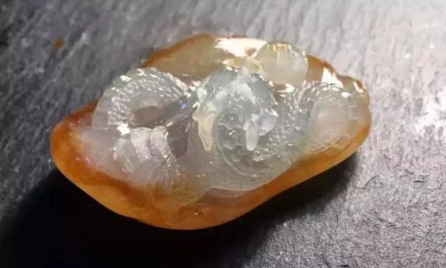 从顽石到璞玉,师傅设计的是中国古代神话传说中的“龙”,有中华名族龙的传人的寓意包含,大马坎原石起货后油彩味非常的出众,成品局部抛光的地方达到了冰种,也算是一个不错的收获。