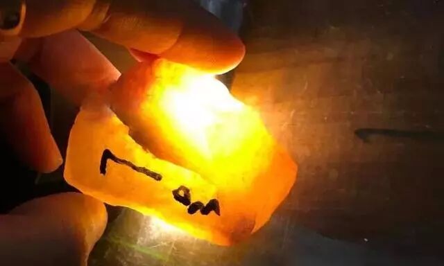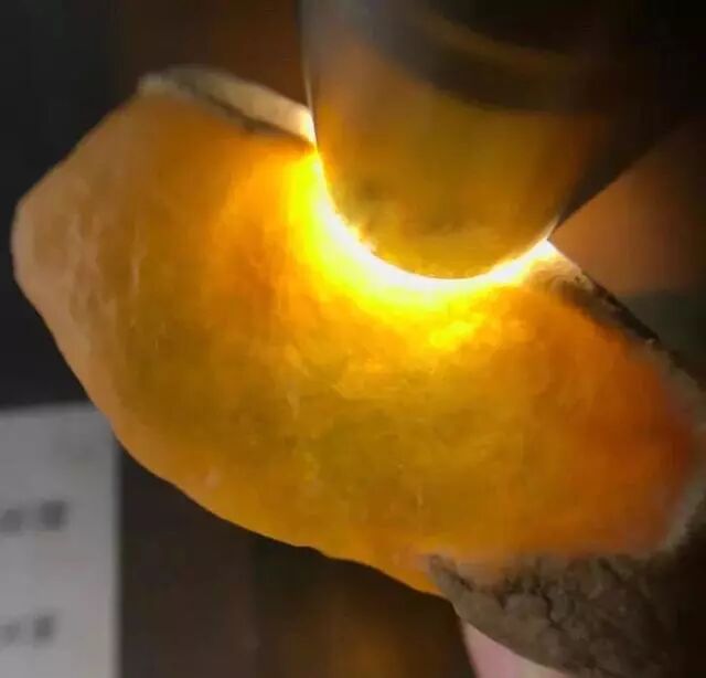 开窗:这块料子无论种水、翻砂、皮壳外表现都非常的好,可定为是一块品质上乘的翡翠原石,橘黄色或者蜜糖色的黄翡,颜色不仅漂亮诱人,更透着自古以来那浩浩汤汤的尊贵之气。所以,质优水好的黄翡很有收藏价值。