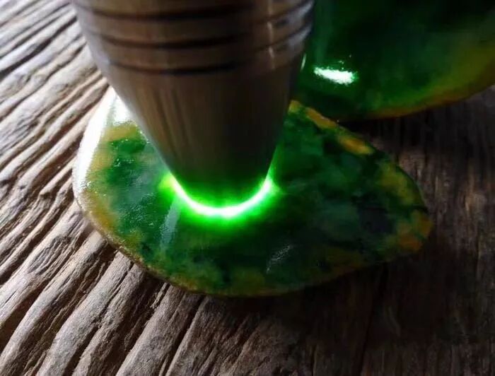 整个面翻开来看看里面的肉质,哇塞,黄加绿,整块的一片绿种带有点点的黄色,这正是锦上添花之作,太漂亮了!
