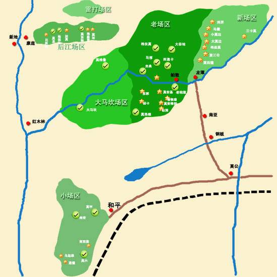 翡翠赌石的主要产区,按玉石的种类和开采时间顺序分别为:老场区、大马坎场区、小场区、后江产区、雷打产区和新场区。