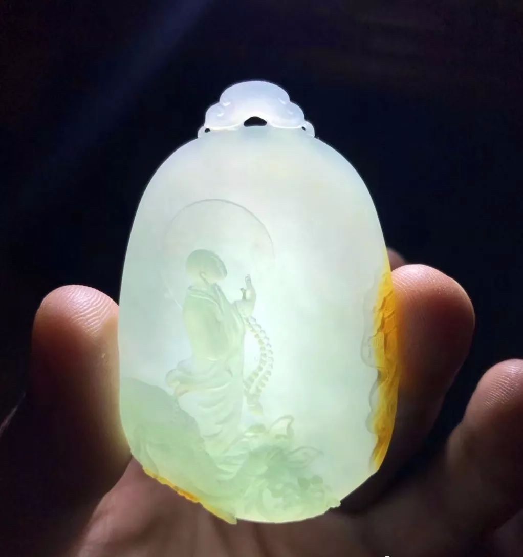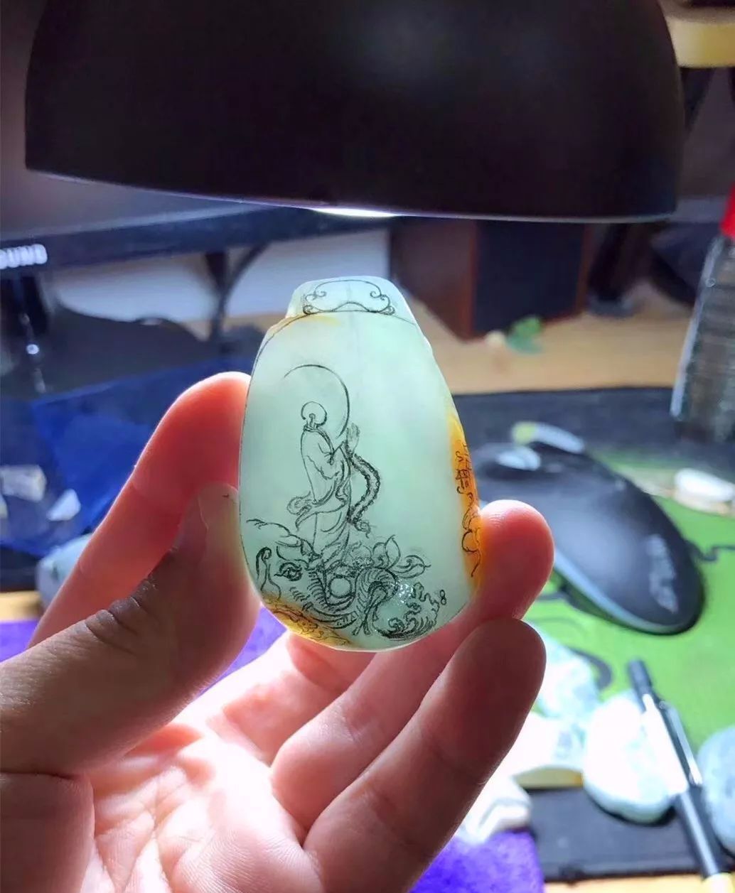 很多朋友不太喜欢大马砍的翡翠原石,觉得这样的料子多并且廉价,而且色都是一层雾,里面颜色都变了,很是让人失望,但雕工师傅最喜欢这样的料子,因为有了雾层,就可以做巧雕,巧雕出的两色以上的作品,最是值得品味!