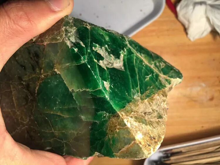 远光灯照射整块原石都是通透的,说明下面不存在变种,整块原石都是肉!