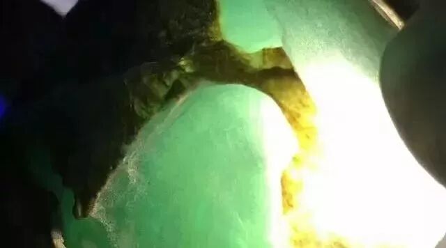 在判断原石的水头的时候,我们为了更清楚的看到水头,选择在光线比较暗的环境下,还会在原石的皮壳上喷水。