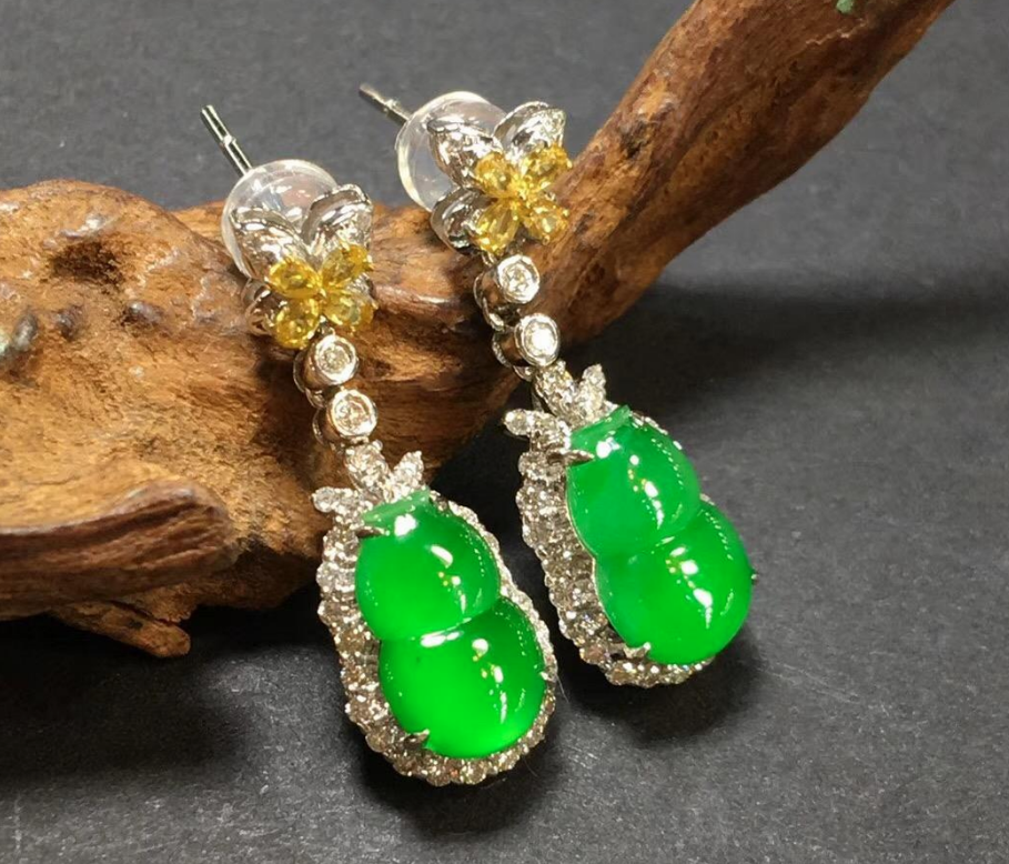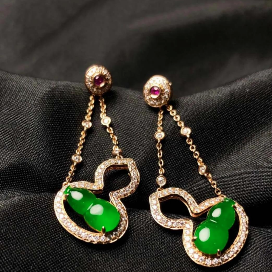 适合什么样的翡翠耳环和我们本身的身高、脸型都有很大的关系,耳环可以分为耳钉和耳坠,耳钉大多比较小巧精致,而耳坠就显得比较大胆,有冲击力。