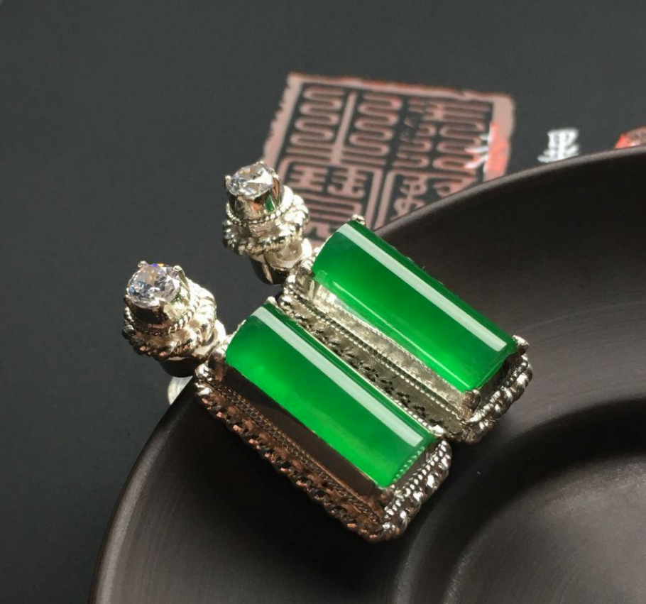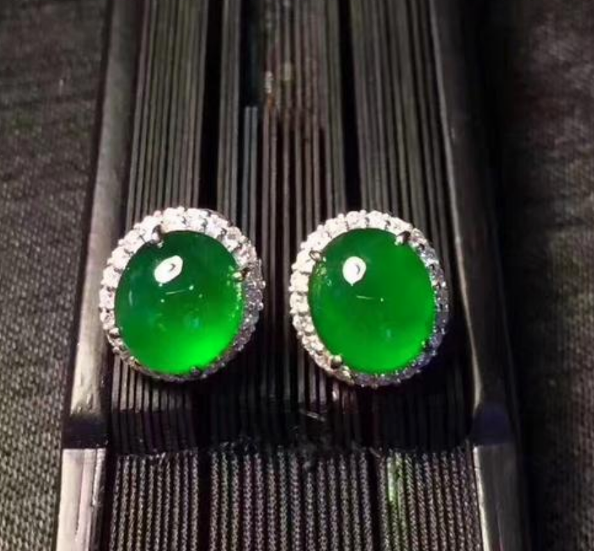 比如,下图这对翡翠耳环看起来和戒面十分相似,实际上,我们完全可以将它再加工成一枚精致的翡翠戒指,翡翠饰品的价值会受到品质影响,品类对价值的影响反倒比较小。