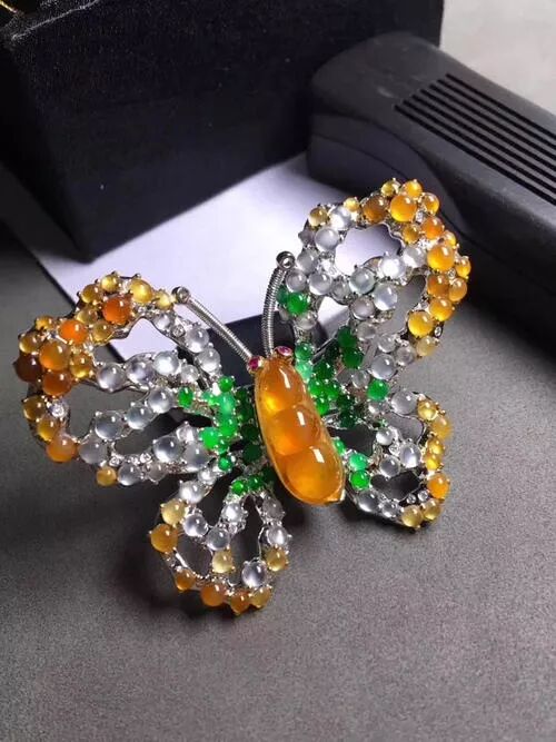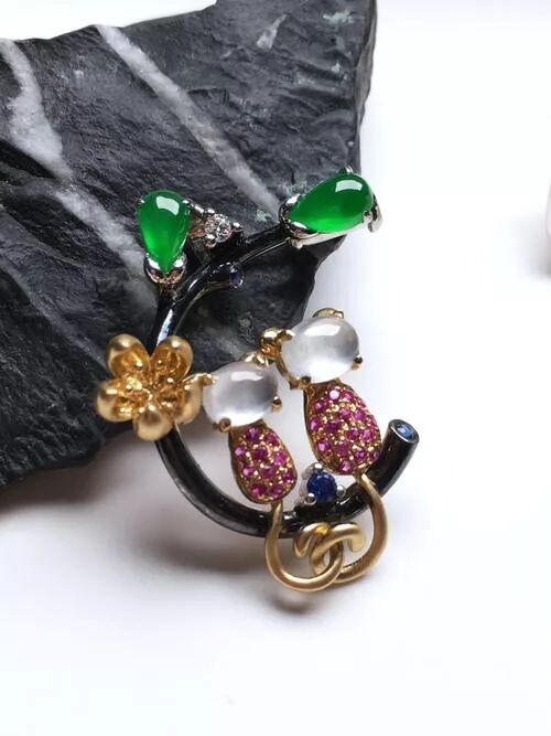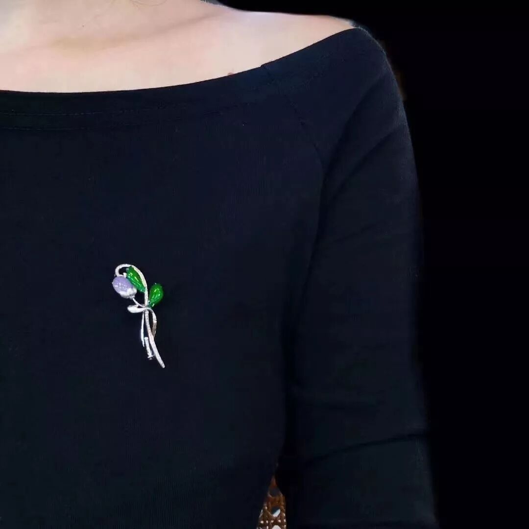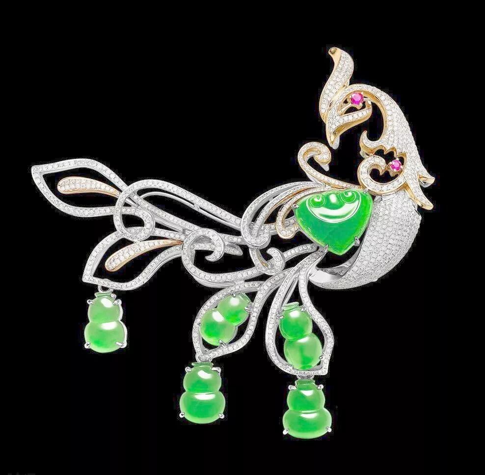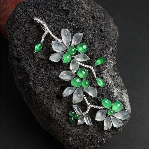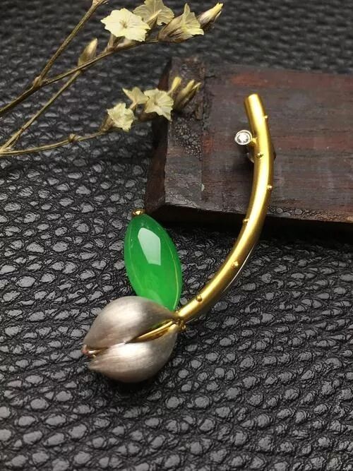 翡翠胸花以突出翡翠的颜色和造型、充分展示翡翠种水的魅力为特色。