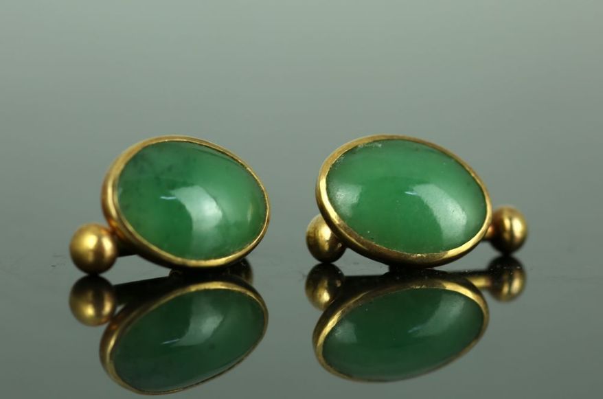翡翠袖扣是西服装饰配套的必要元素,是男性服装讲究的标志之一。