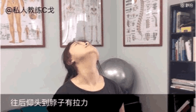 往后仰头到脖子有拉力,头歪到一侧感受一侧的牵拉感,再歪向另一侧感受牵拉。