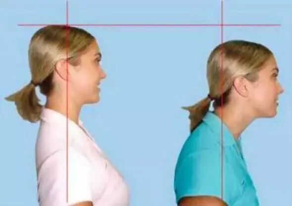 另一种是头颈前移,头颈前移必然导致头部位置降低,这会让颈胸分界消失在下巴的阴影里。当然,最大的可能是这两种原因同时作用。
