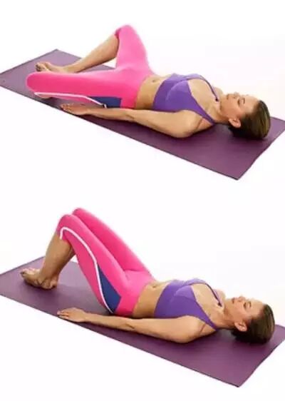 慢慢挺起腰腹部和臀部,脚跟慢慢离地,使大腿与上身成一直线为止。保持5-7个呼吸的时间。