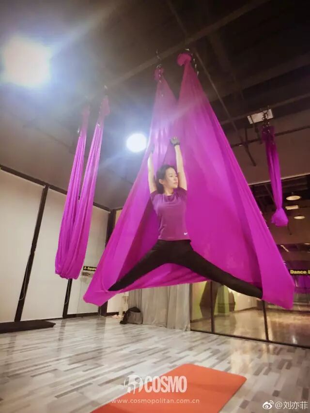 空中瑜伽也玩得很溜,真不愧是神仙姐姐!