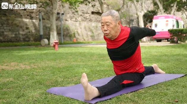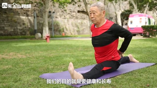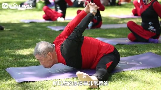 但事实上,杨爷爷从来没有追求瑜伽的高难度动作,也没有确切的目标,只是想要把自己的身体搞好就行