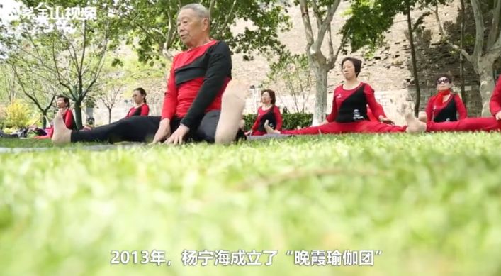 2013年,杨宁海成立了“晚霞瑜伽团”,他从一个人变成一群人,开始以义务向更多老年人普及瑜伽这项运动