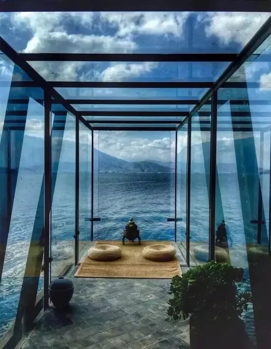 杨丽萍会在海天相接的玻璃长廊练瑜伽、冥想。