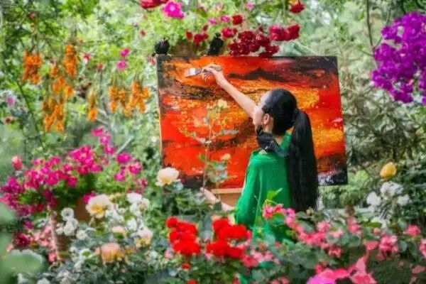 有时和画融为一体,让人分不清是画在人中,还是人在画中。