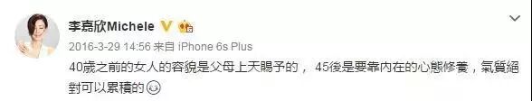 “40岁之前,女人的容貌是父母上天賜予的, 45岁之后是要靠内在的心态修养,气质绝对可以积累的。”