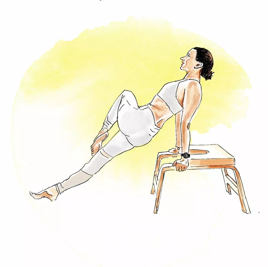 幻椅式手臂上举中,很多人手举不到耳朵两旁,却勉强自己,很容易造成胸腔过度前凸,塌腰的代偿。