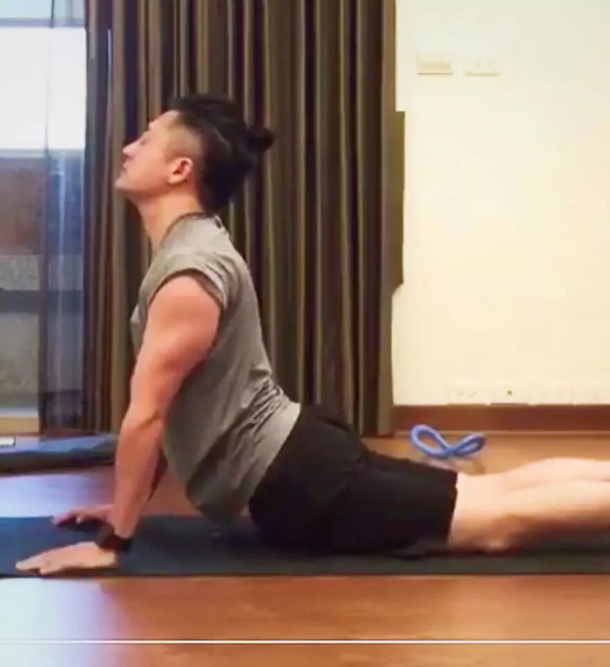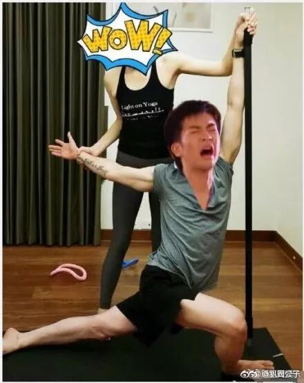 五阿哥苏有朋在社交平台上晒出一组练习瑜伽的照片,并感慨:no pain no gain(一分耕耘一分收获)!