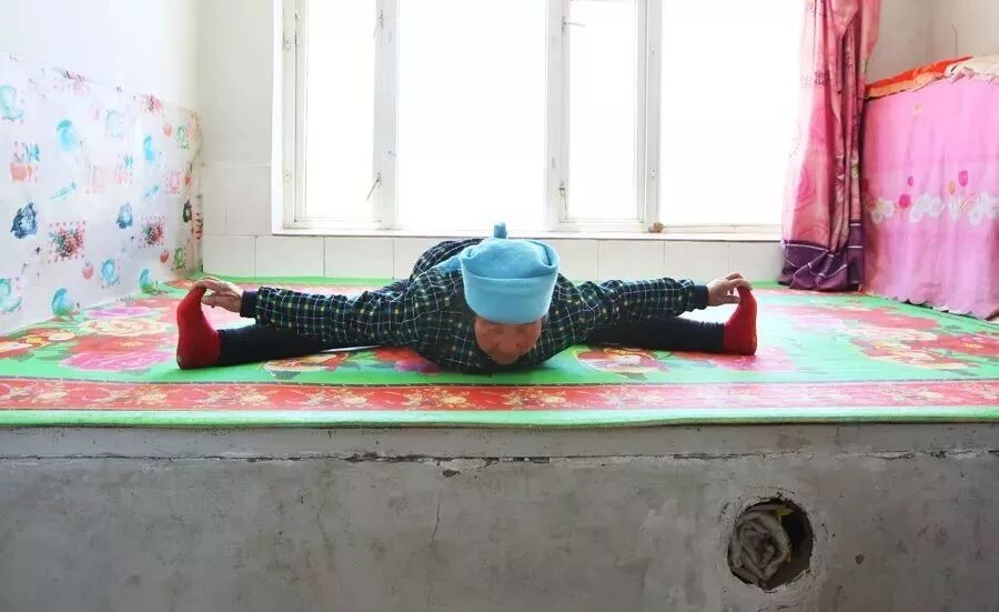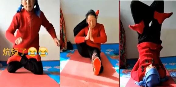 视频中的老人是河北张家口的武启莲,是一位农民。2016年,也就是3年前,村里的扶贫工作组来了,集中大家一起练瑜伽,76岁的武奶奶从最简单的瑜伽动作开始,一直坚持到现在。