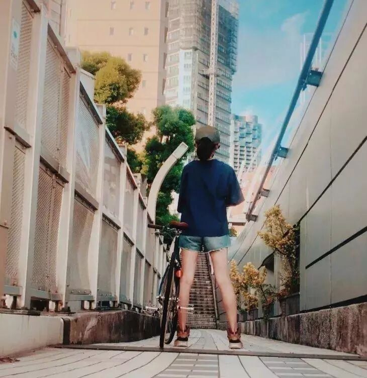 怀孕13周:她在街道里骑行,被高高的台阶挡住去路。