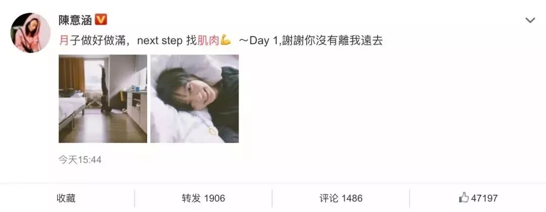 虽然顶着油头,刚出月子,不过陈意涵已经迫不及待地开始准备运动计划了。甚至表示下一步将会找回自己的肌肉。