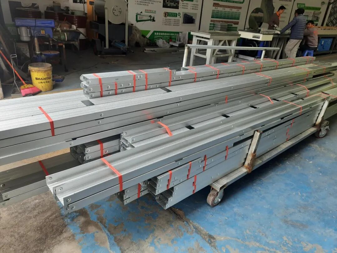 2、根据设计样式和龙骨组装图纸,将零件组装成部件,运抵现场组装成龙骨整体结构。