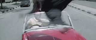 拍电影,也是豁出命来。拍《警察故事3》,一场飞车戏中直接从车上掉下去。