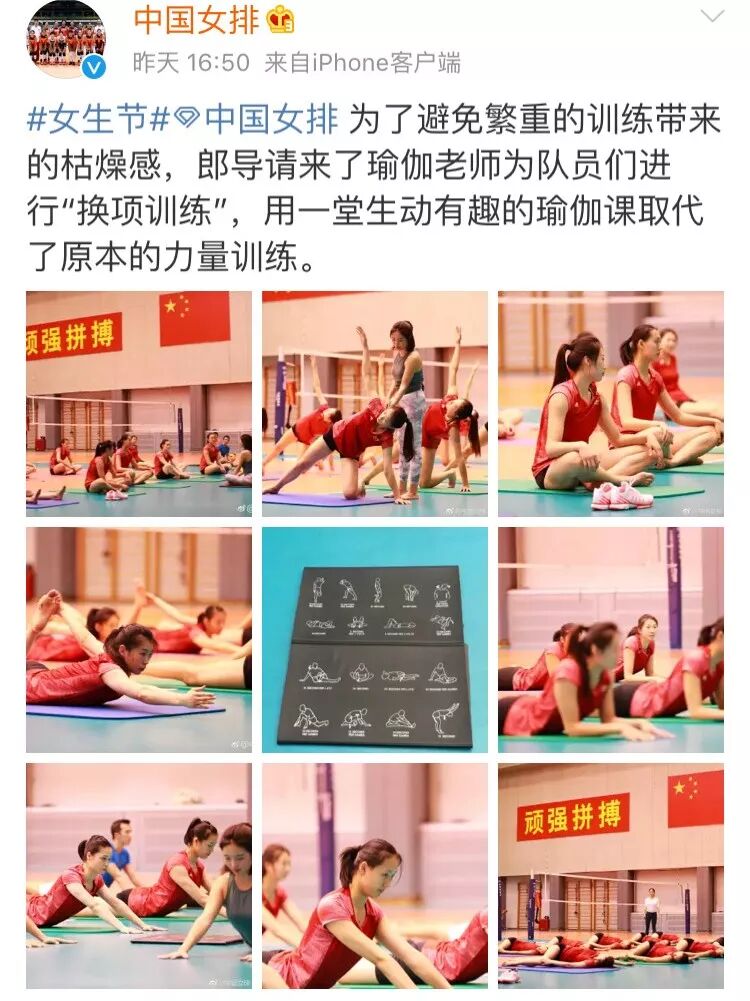 这不,3月7号女生节,为了避免繁重的训练带来的枯燥感,中国女排的郎导请来了瑜伽老师为队员们进行“换项训练”,用一堂生动有趣的瑜伽课取代了原本的力量训练。