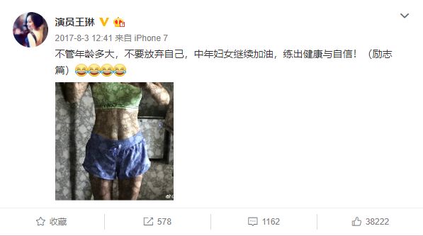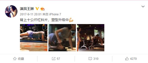 之前在微博也晒过腹肌,四肢纤细,腹部线条紧实,完全不输之前的马甲线女王袁姗姗。