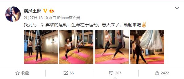 27号下午,49岁的“雪姨”王琳分享自己练习瑜伽的近照,并配文:“找到另一项喜欢的运动,生命在于运动,春天来了,动起来吧”。![]()