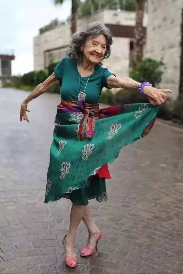 所以年近百岁的她仍然穿着漂亮的花裙子,涂红指甲,穿粉色小高跟,散发着宝石般的魅力。不管在哪里,她都是独一无二的风景。