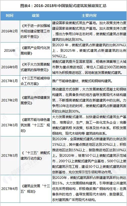 近年来,在环保压力不断加大、城镇化及房地产产业发展的推动下,装配式建筑进入高速发展及创新期,尤其是2016年以来,国家及地方多次出台指导性、惠普性及鼓励性政策,促进装配式建筑产业的发展。