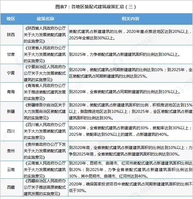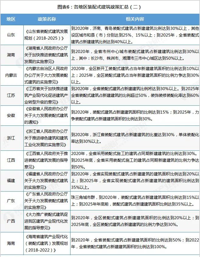 全国装配式建筑政策性文件的颁布落实给各个省市地区装配式建筑行业发展指明了方向,同时也为各地方政府结合本地实际情况发展装配式建筑,制定产业发展规划奠定了基础。