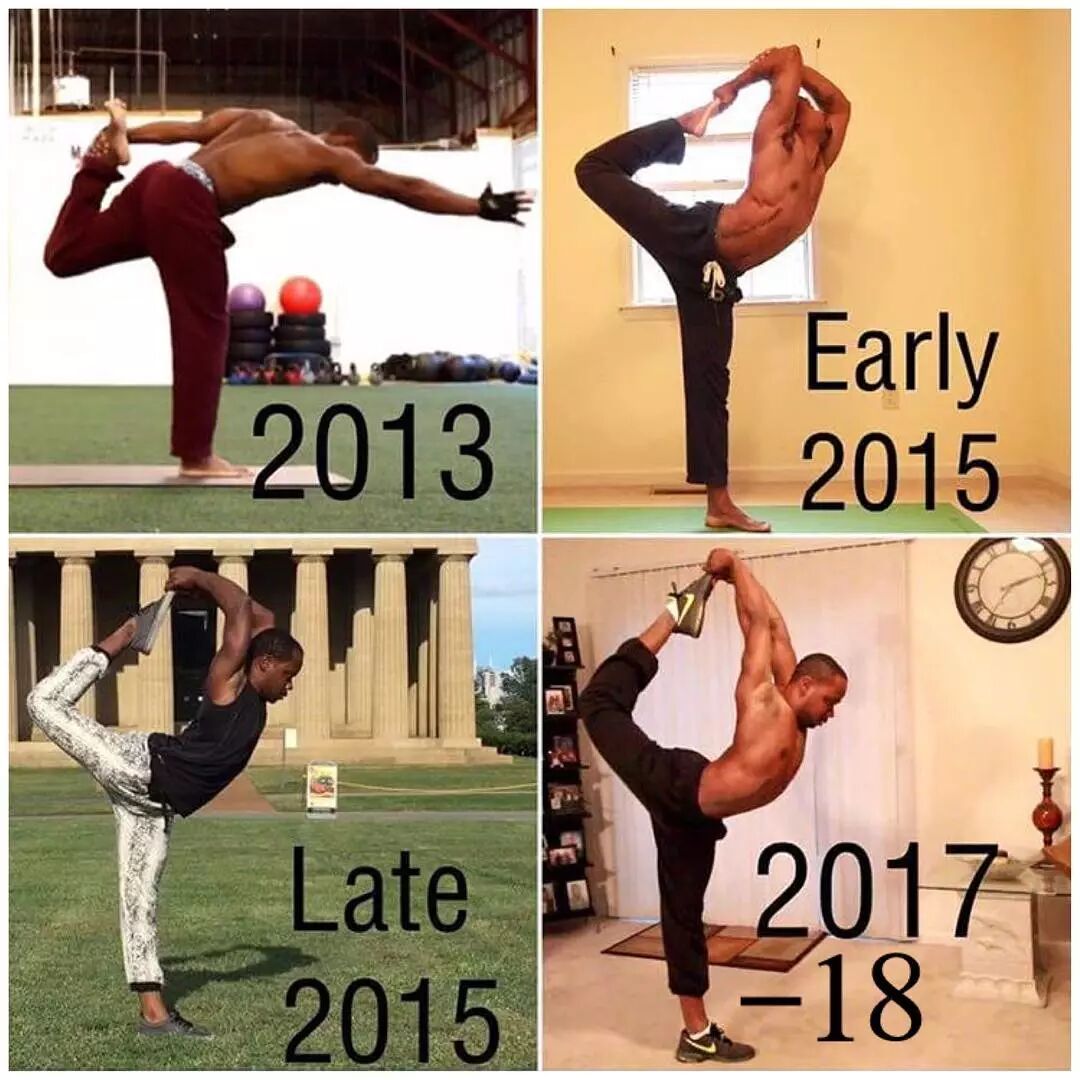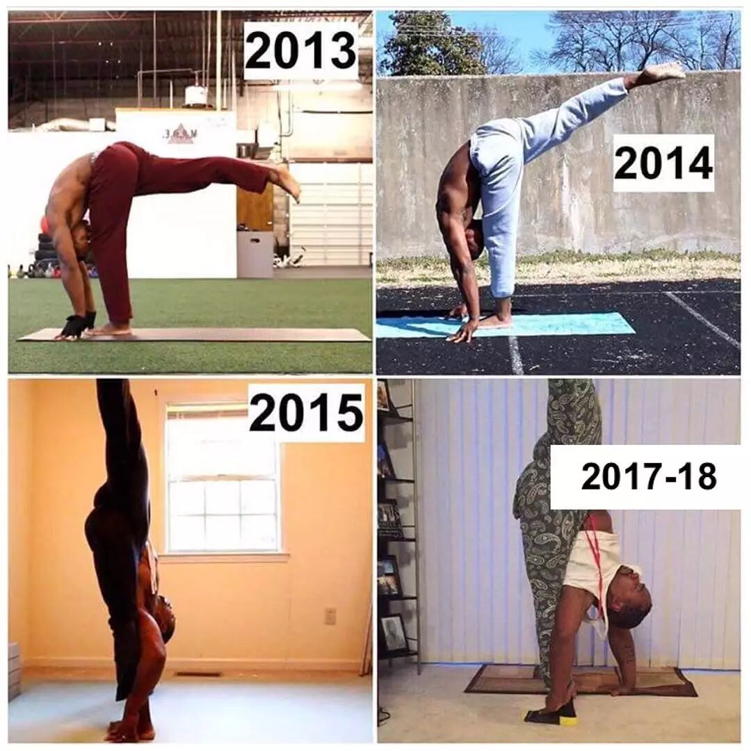 而且慢慢的他还能做很多瑜伽的高难度动作