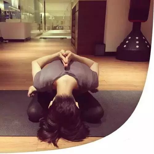 双腿盘起,双手后背交叉,像婴儿般蜷缩,额头触地。深呼吸保持20秒。