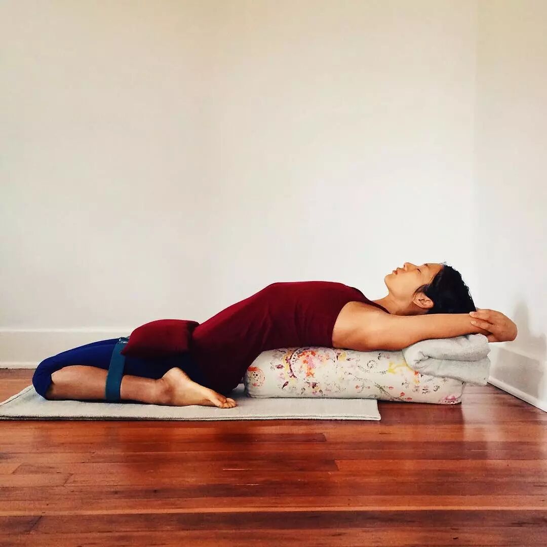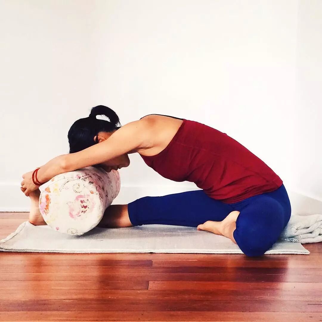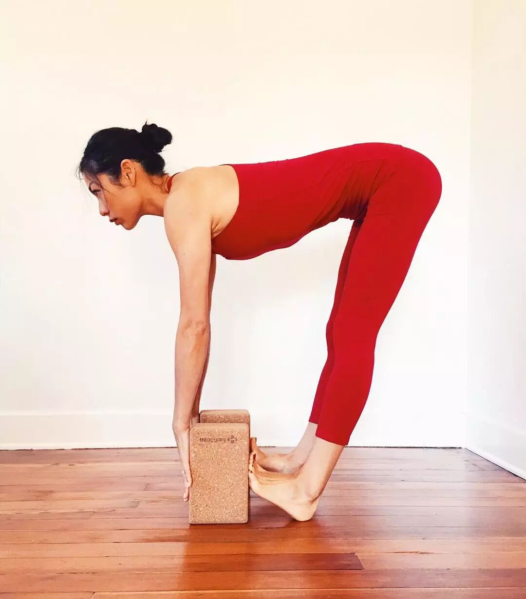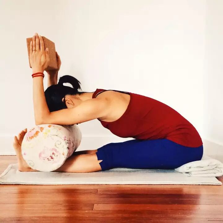 髋部打开更容易,双腿放在瑜伽砖很舒服