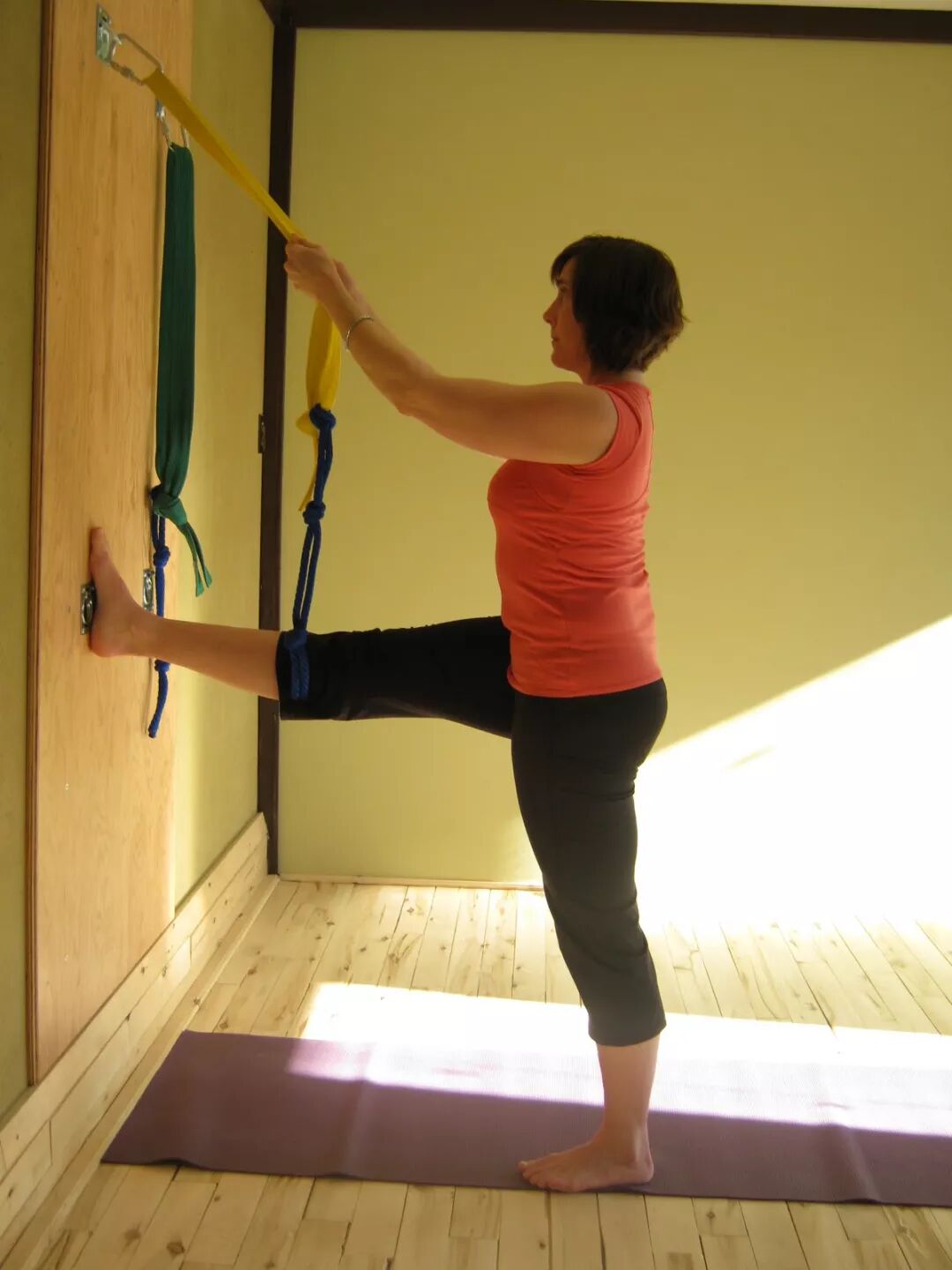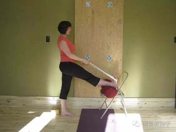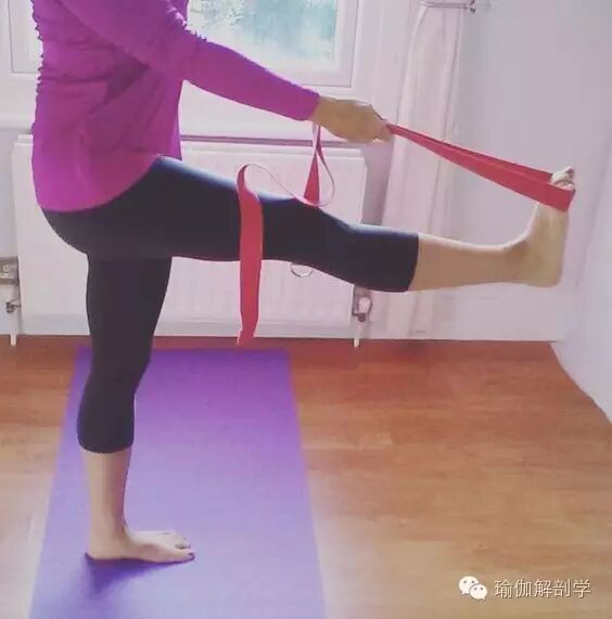 山式站立,屈右膝,用右手的拇指、食指和中指抓住右脚大脚趾,左手叉腰,保持身体的平衡,呼气,慢慢的将右腿抬起,伸直膝盖,身体稳定后,左手也握住右脚,再次将腿向上远离地面,左手再次扶髋,屈右膝,慢慢的将腿还原到山式,换另一侧练习。