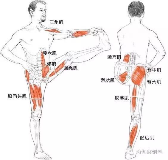 上抬手臂,肩关节屈曲微内收,肘关节伸直,脊柱中立位,骨盆保持水平,站立腿髋关节中立伸直,膝关节伸直,上抬腿髋关节屈曲,膝关节伸直。