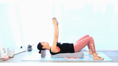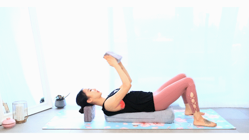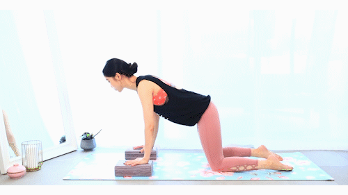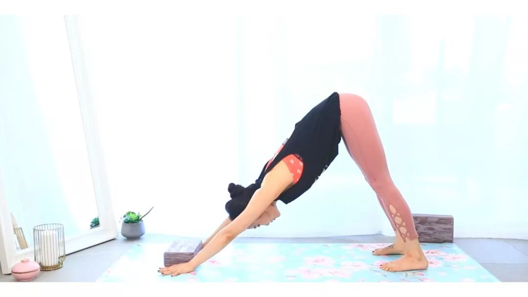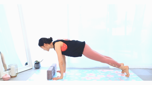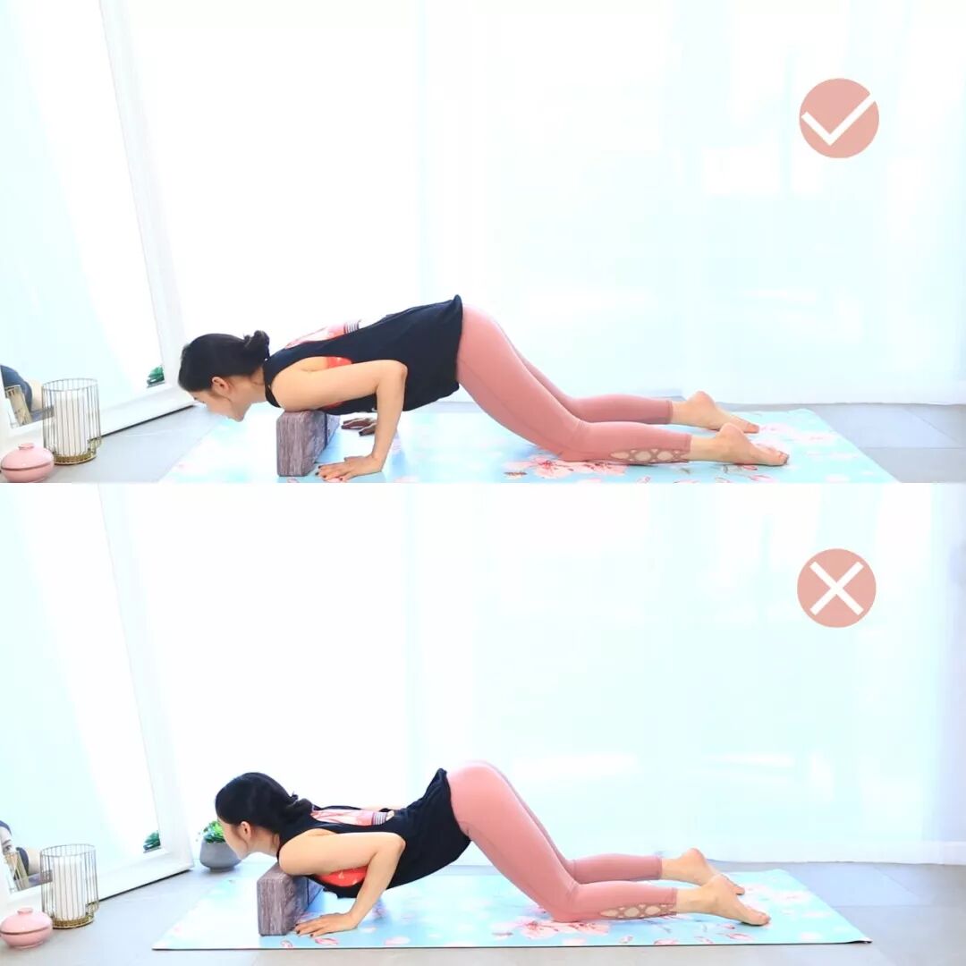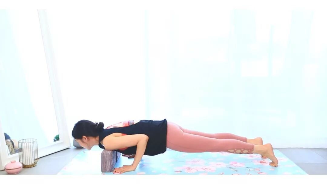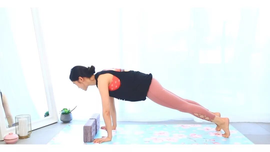 这是一个动态的动作,能够高效的锻炼到我们的上肢,同时放置瑜伽砖在肩膀下方,提供了休息的机会。所以这一组动作练习起来的强度,也不会太大。