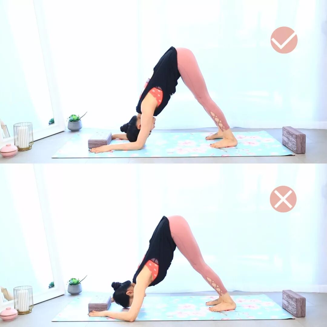 这个动作的拉伸,需要定好点,和四柱支撑式一样,找到身体各个部分的位置。同时需要注意手肘一定要内收,身体向下的时候,才会明显感觉到手臂肌肉的拉伸感。
