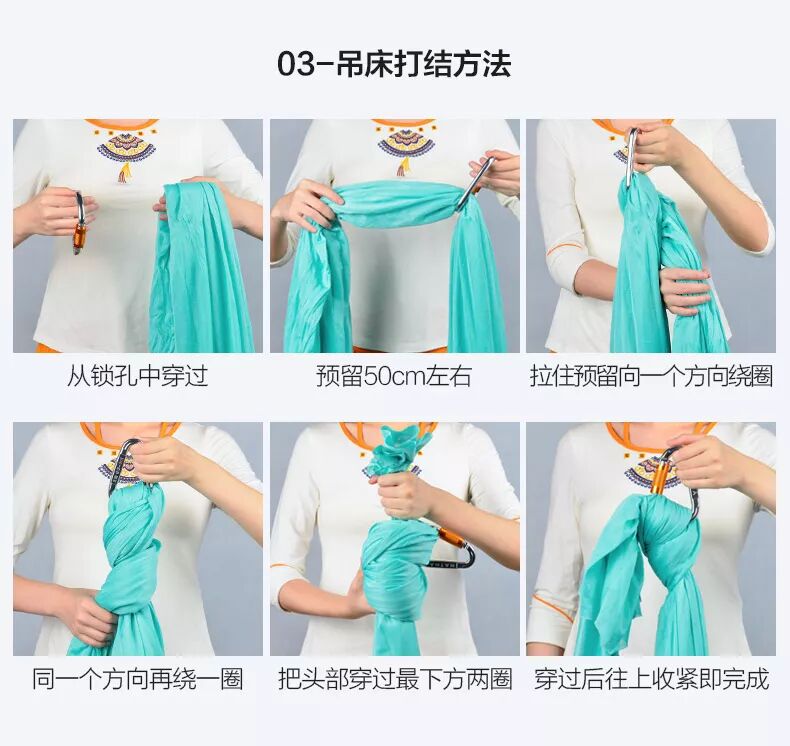1. 手表、珠宝和突出的穿刺的事物在你上吊床之前去掉,避免撕裂或撕吊床。确保你的手指甲、脚趾甲修剪。乳液、防晒霜或其他会让你控制吊床的难度增加。